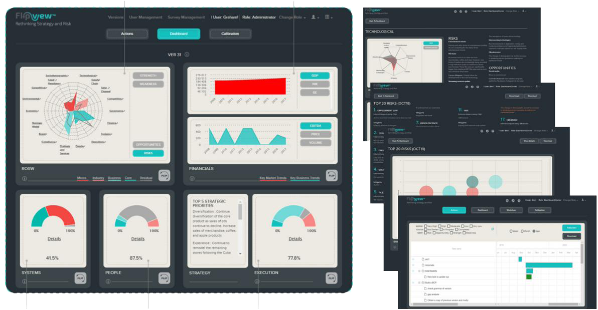 This customisation has changed the way Flipview is used. We recently on-boarded a client in the utilities space and at their request the starting point was the strategic plan, with surveys, KRIs and feeds designed off of this to identify potential obstacles and track progress.